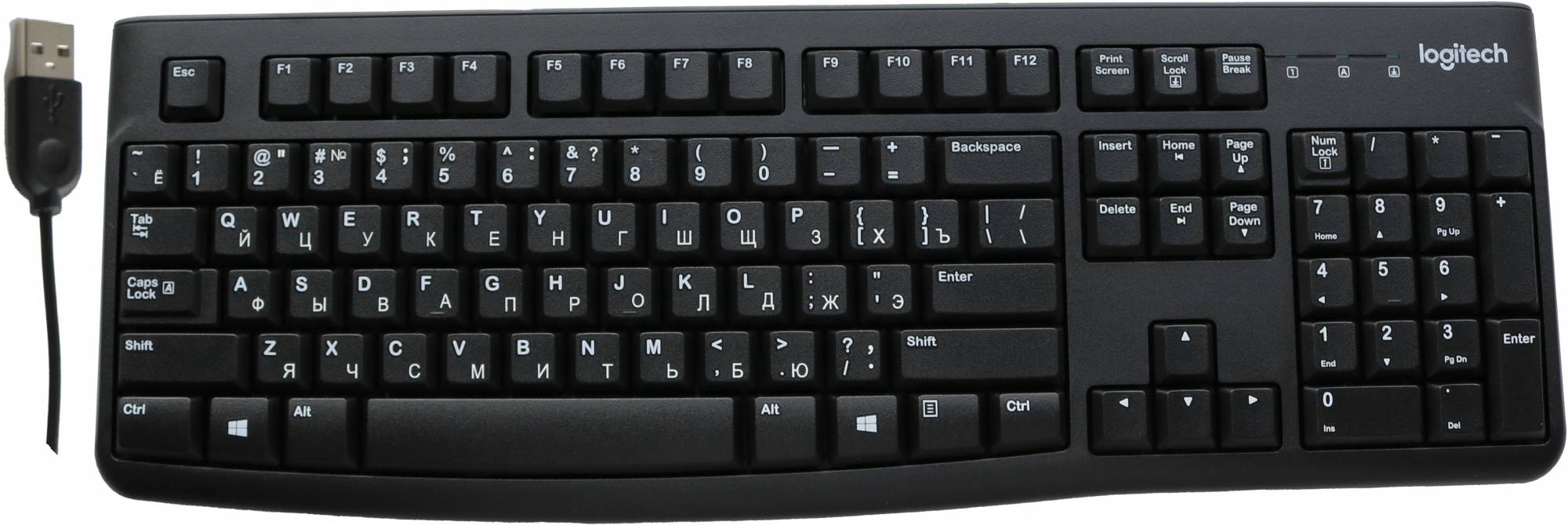 Клавиатура Logitech K120, русские и английские буквы, черный (920-002583)