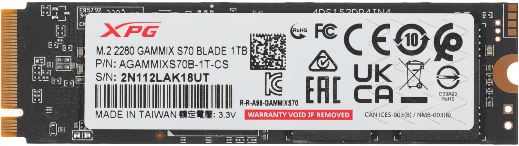 Твердотельный накопитель A-Data XPG Gammix S70 Blade 1024ГБ, M.2 2280, PCIe 4.0 x4, M.2 AGAMMIXS70B-1T-CS
